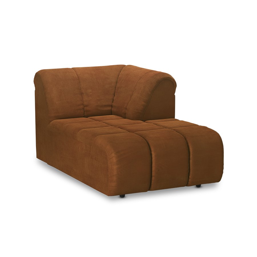 Wave couch: element right divan, corduroy rib, dusty orange