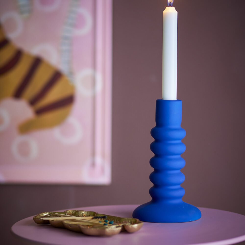 Trudy Candle Holder, Blue, Stoneware