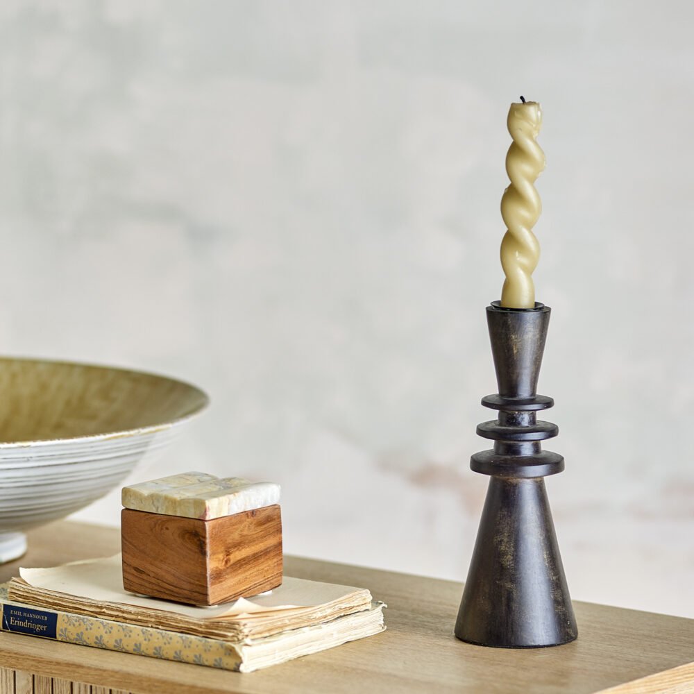 Armel Candle Holder, Black, Mango