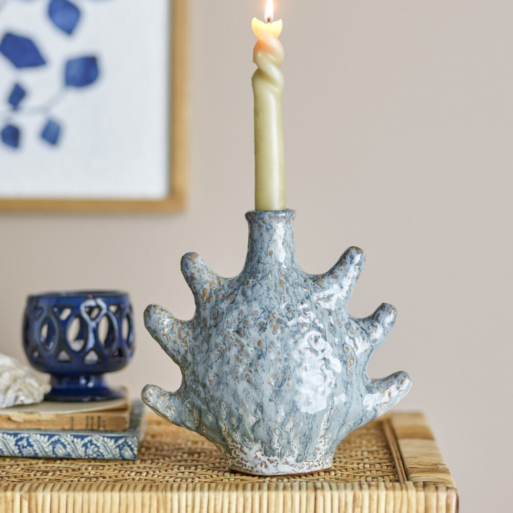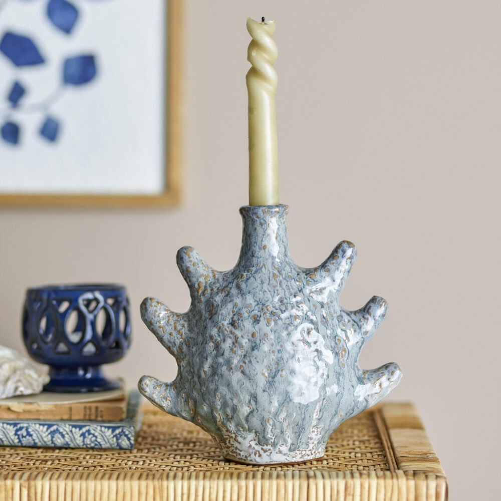 Bridget Candle Holder, Grey, Stoneware