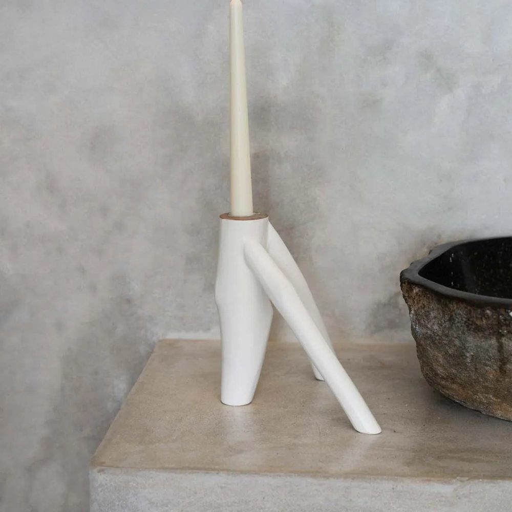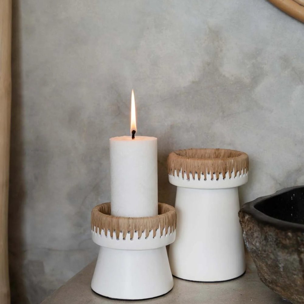 Phyllis Candle Holder, White, Stoneware