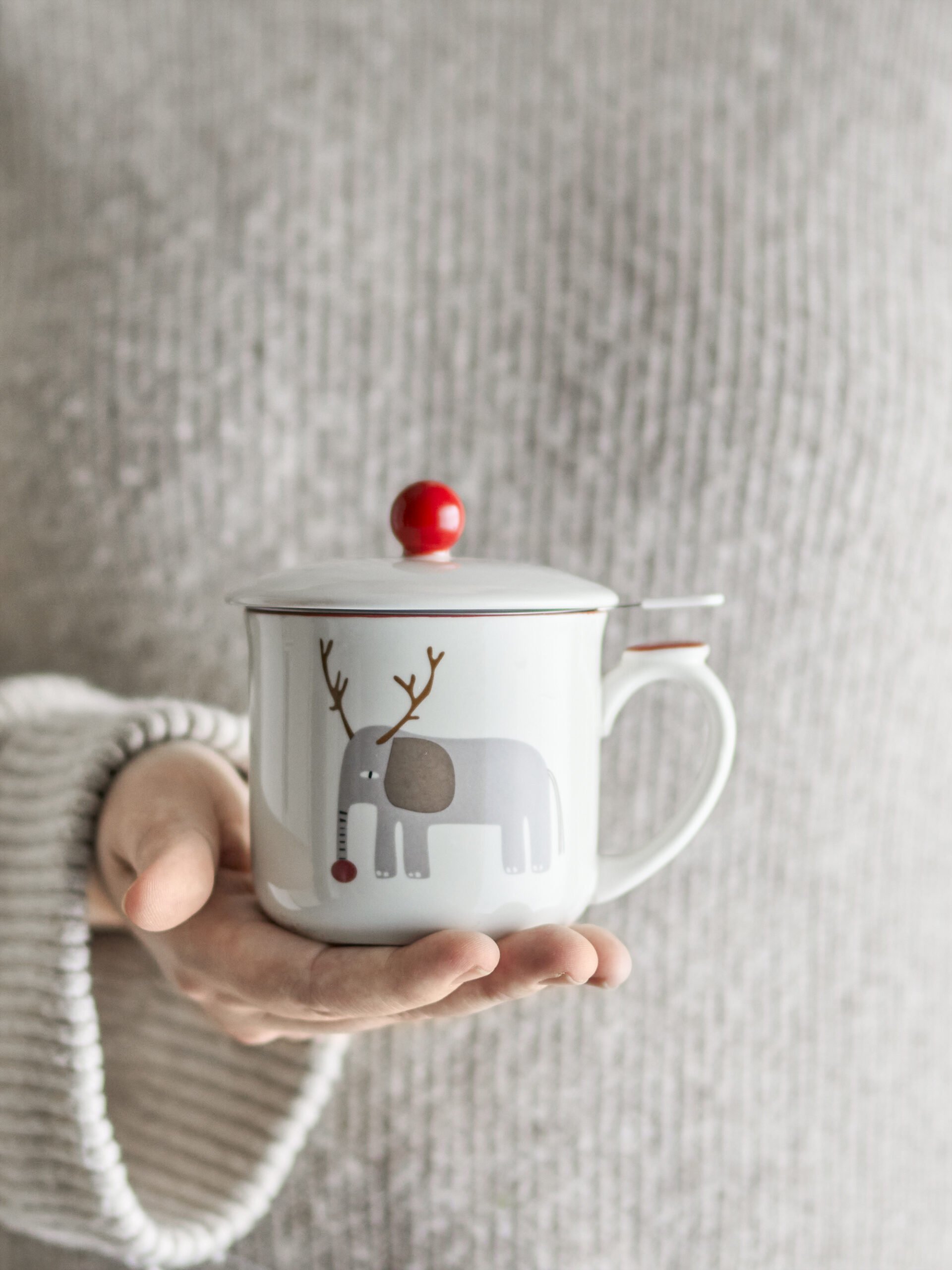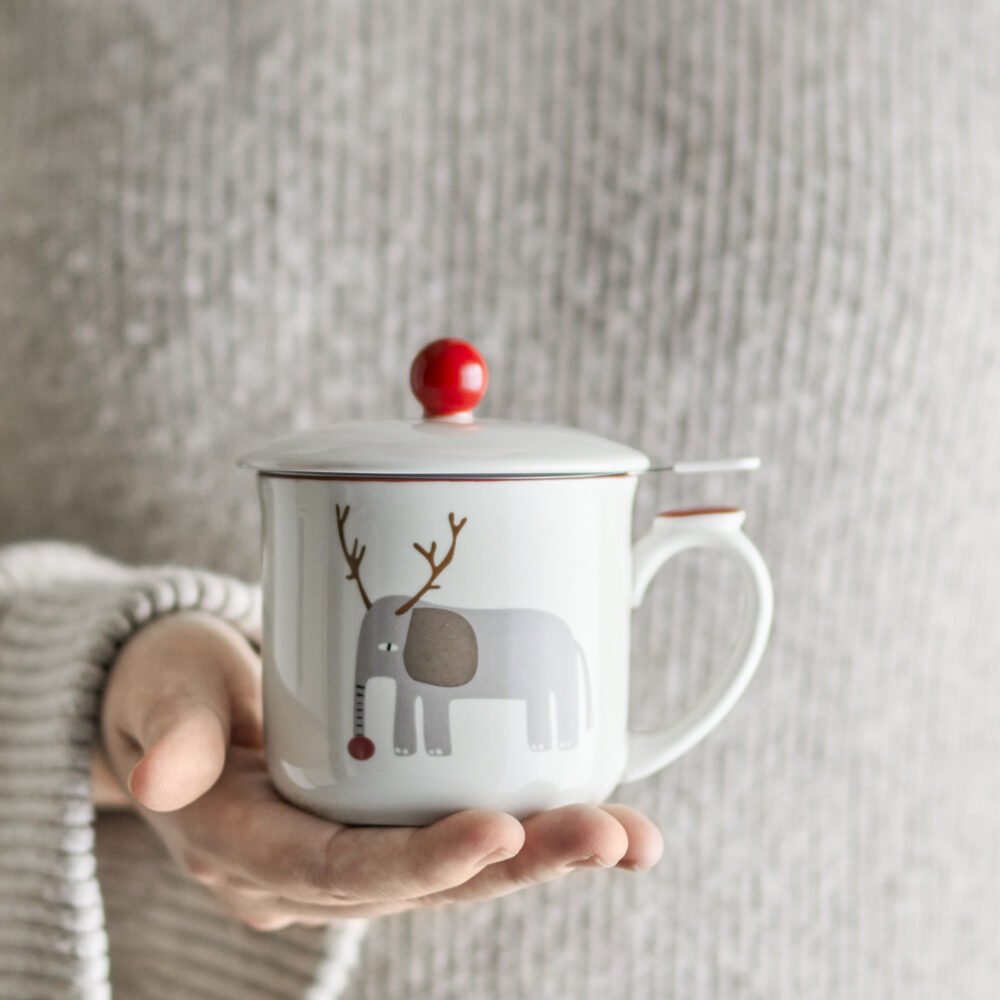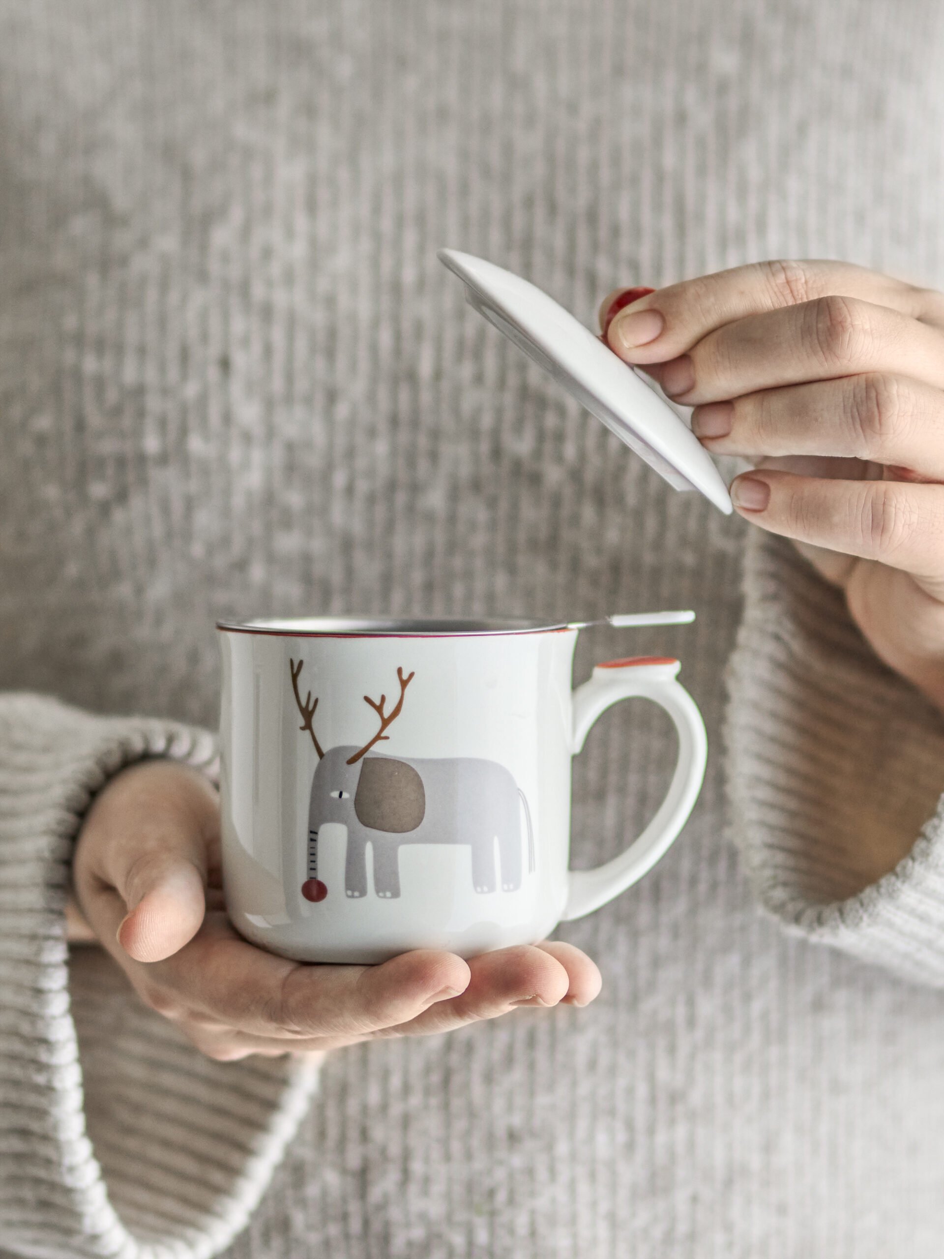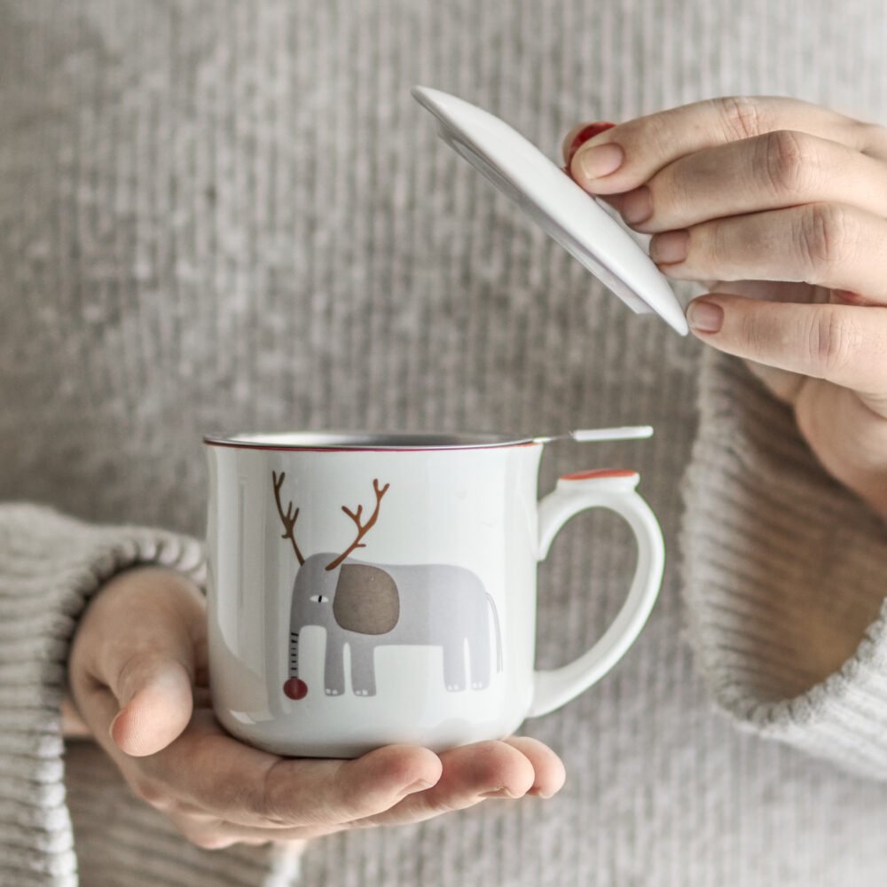 Valentin Mug w/Lid and Strainer, Green, Stoneware